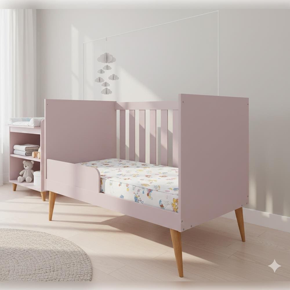 Berço 2 em 1 Móveis Estrela Ternura com Colchão Herval Baby Encanto