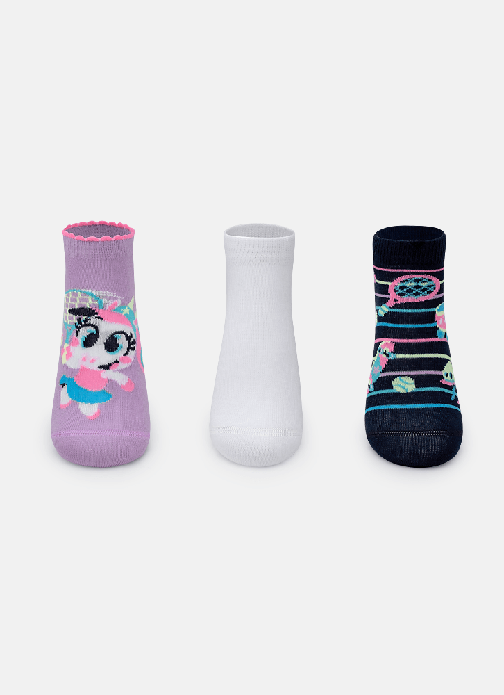 Kit com 3 Meias Soquete Adulto Unissex Desenhado