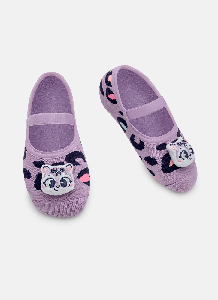Meia Sapatilha Antiderrapante Com Led Menina Onça