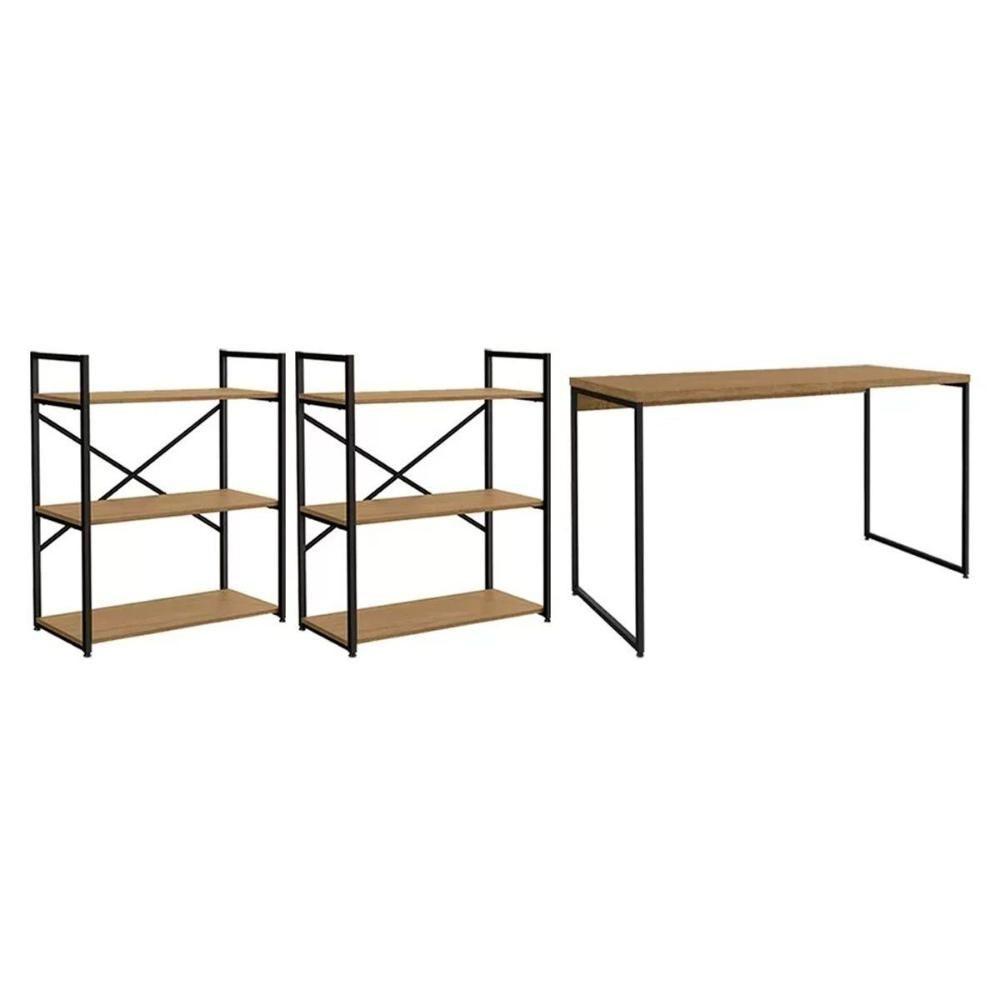 Escritório Completo Industrial (1 Escrivaninha, 2 Estantes) 3 Peças Freijó - Kappesberg