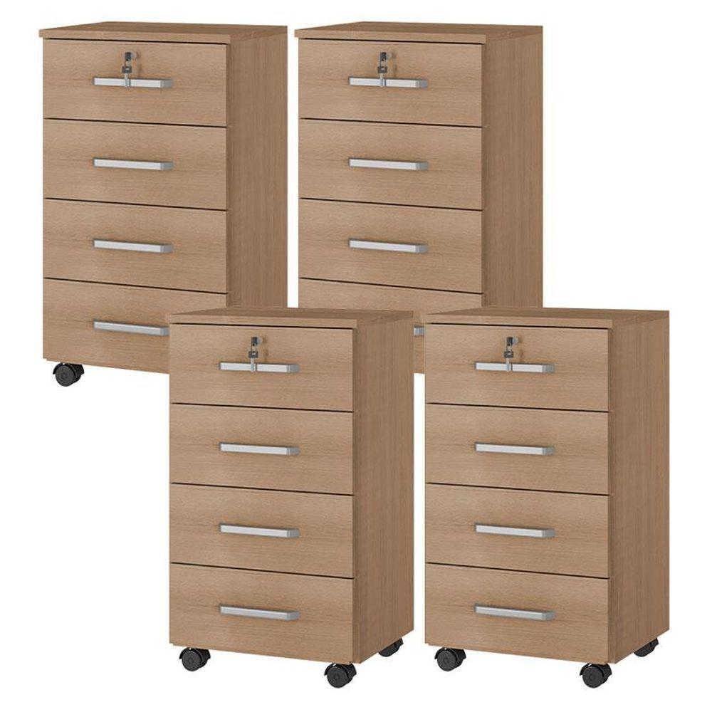 Kit 4 Gaveteiros Para Escritório Gávea Com Chave Freijó Fosco - Móveis Leão