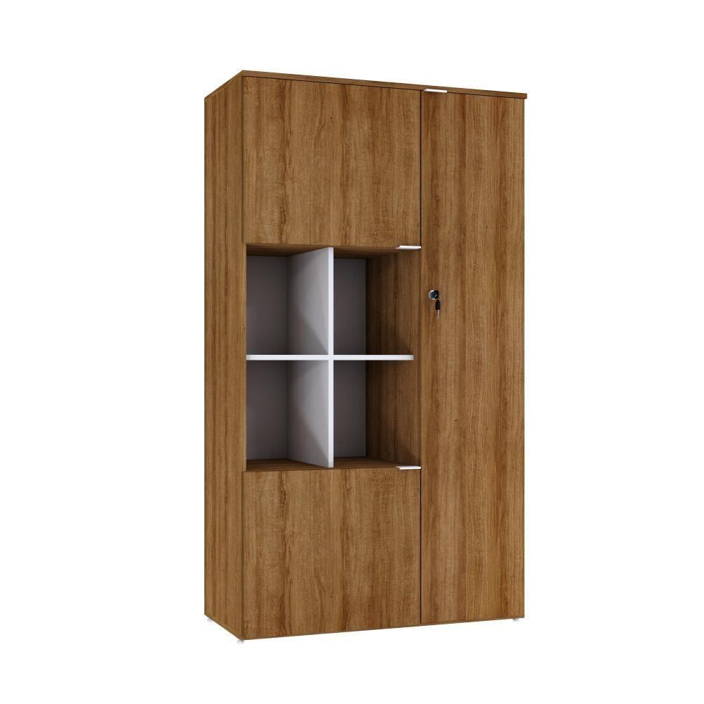 Armário Alto Com nicho E 03 Portas 161,5x90x42cm Wlan90 Nogal - Branco