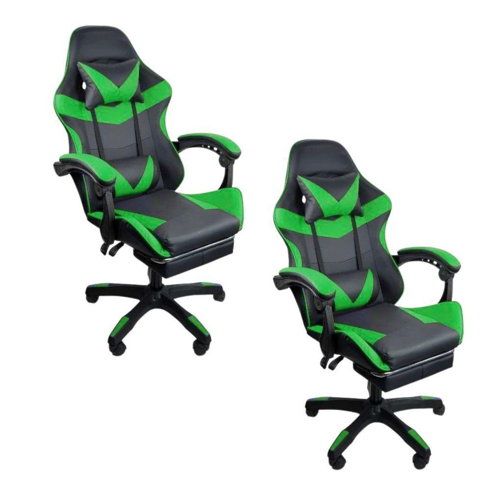 Kit 2 Cadeiras Gamer Stillus Ergonômica Com Apoio Para Os Pés - Preto E Verde