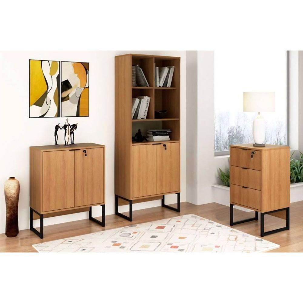 Escritório Completo Industrial 1 Balcão, 1 Armário, 1 Gaveteiro 3 Peças Amêndoa-preto