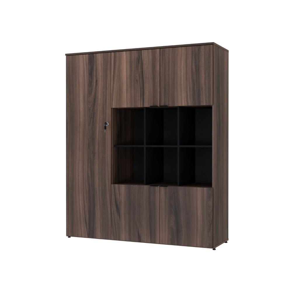 Armário Alto Com nichos E 05 Portas 161,5x135x42cm Wlan135 Nogal - Preto