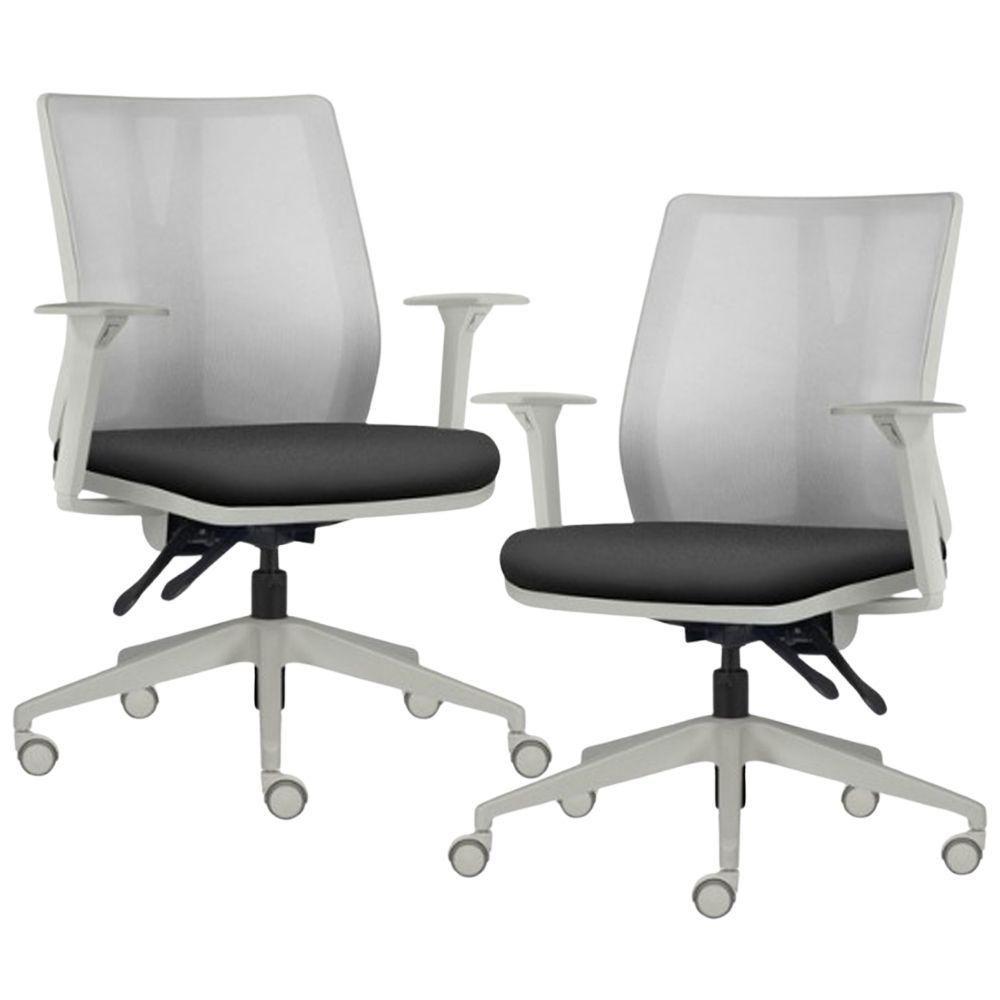 Kit 2 Cadeiras De Escritório Giratória Diretor Flow F02 Base Cinza Crepe Preto - Lyam Decor
