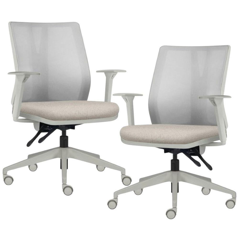 Kit 2 Cadeiras De Escritório Giratória Diretor Flow F02 Base Cinza Crepe Cinza - Lyam Decor
