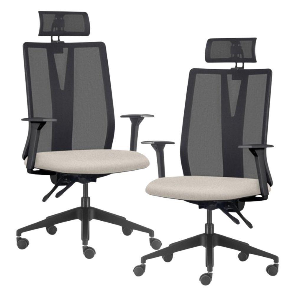 Kit 2 Cadeiras Escritório Giratória Presidente Flow F02 Base Preta Sintético Bege - Lyam Decor