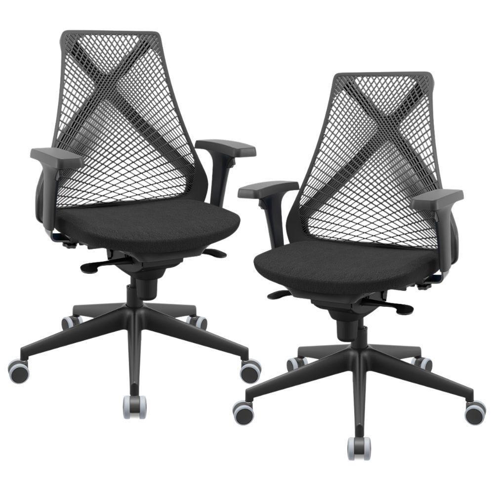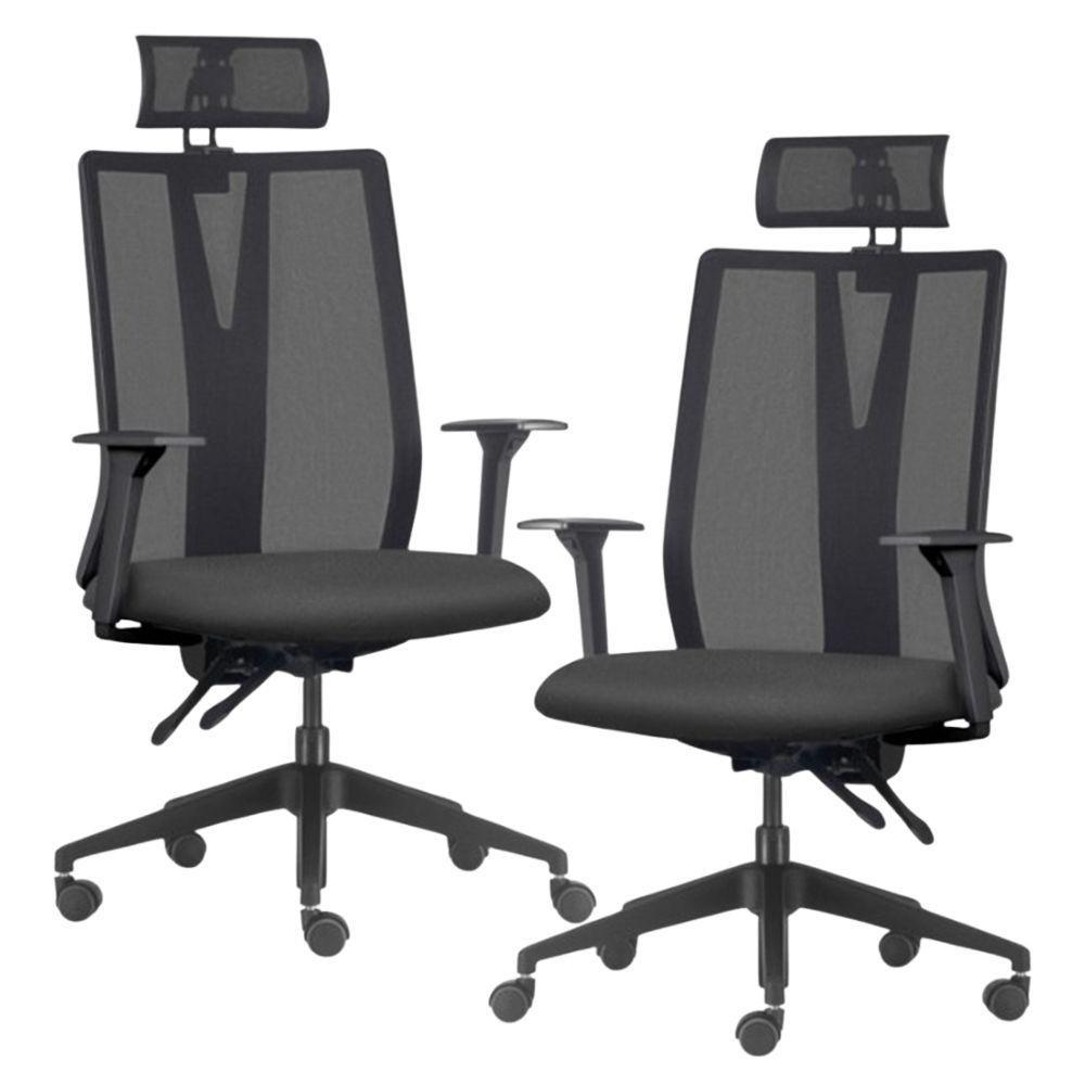 Kit 2 Cadeiras Escritório Giratória Presidente Flow F02 Base Preta Sintético Preto - Lyam Decor
