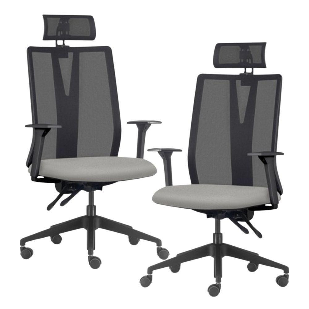 Kit 02 Cadeiras De Escritório Giratória Presidente Unix P03 Tela Cinza Crepe Preto - Lyam Decor