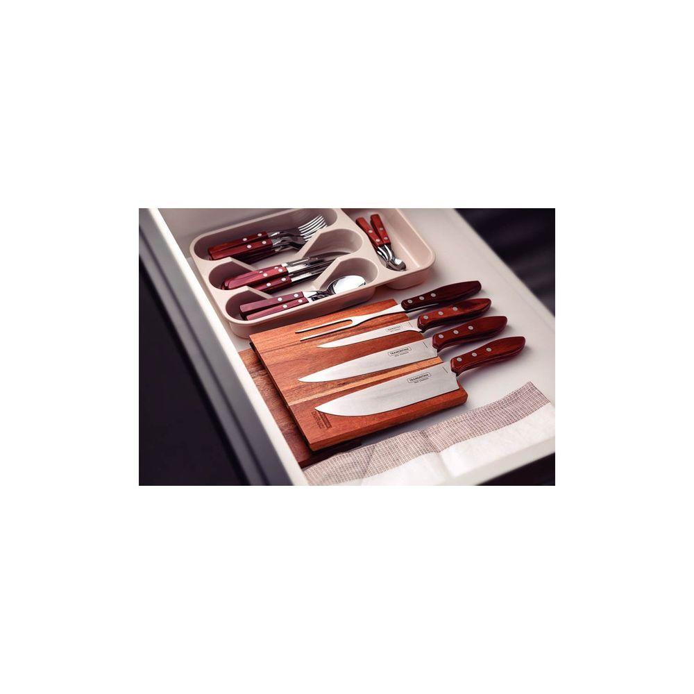 Jogo Para Churrasco Tramontina Em Aço Inox E Cabos Em Madeira Polywood Vermelho 5 Peças Tramontina