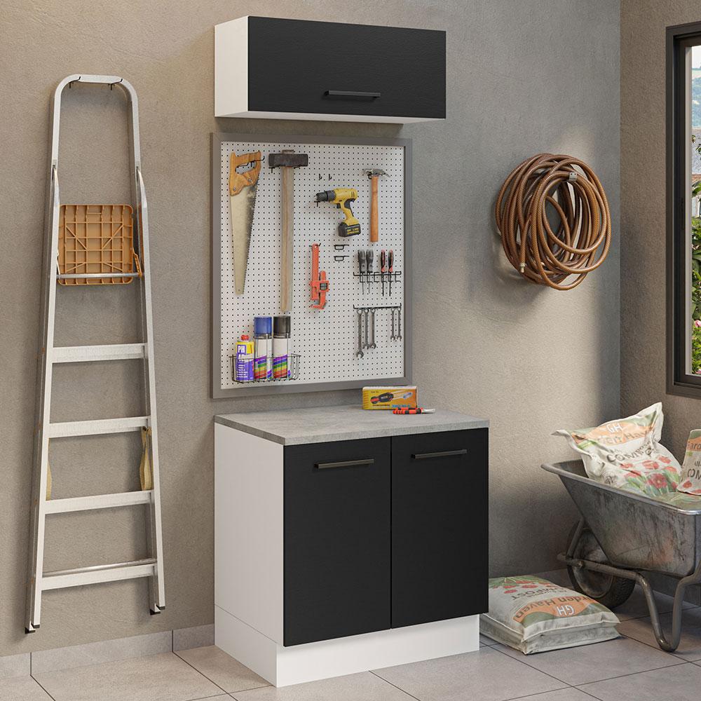 Kit com Balcão e Armário Aéreo Multiuso 80cm Branco/Preto Agata Madesa