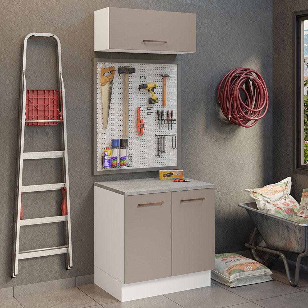 Kit com Balcão e Armário Aéreo Multiuso 80cm Branco/Cinza Agata Madesa
