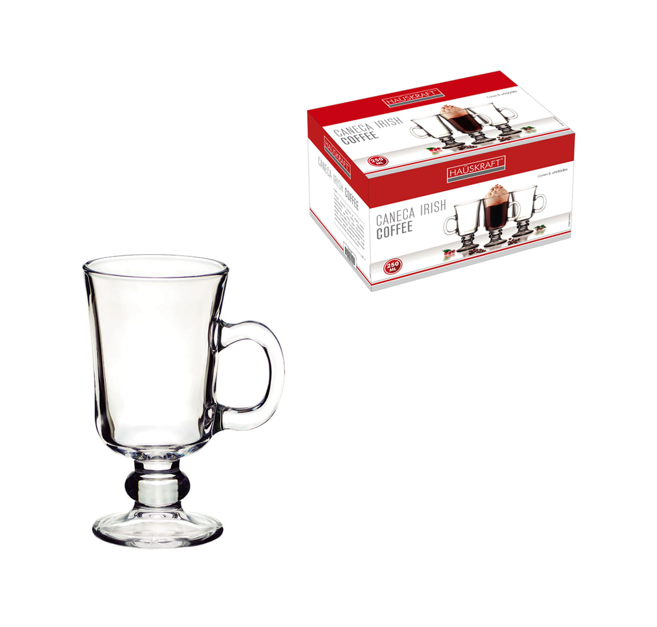 Caneca Vidro Irish Coffee Hauskraft 250 ml 6 Peças