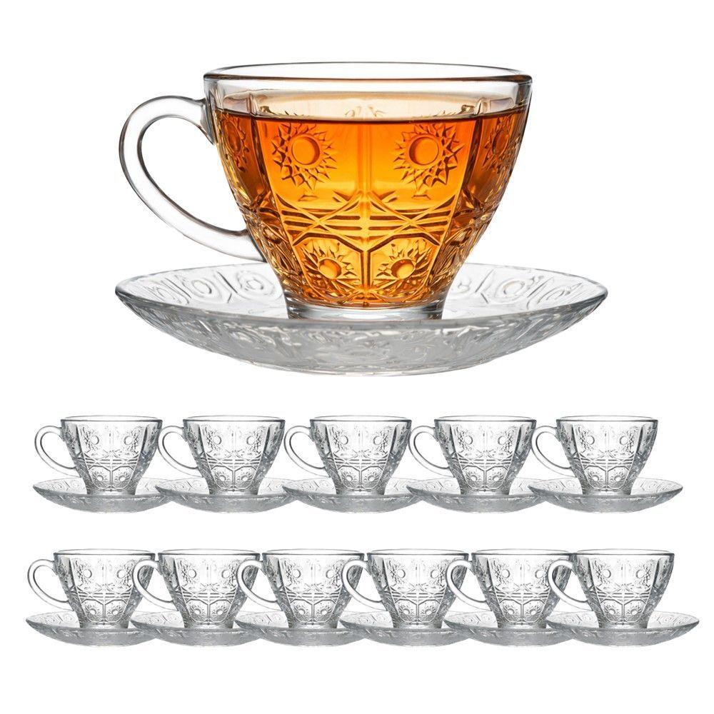 Jogo 12 Xícara De Chá Vidro Transparente Com Pires Bohemia Café Relevo 220ml Em Casa Tem