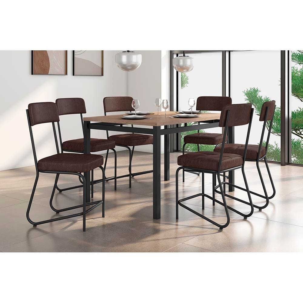 Conjunto Mesa Jantar Fabone Nagoia 6 Cadeiras Mesa Retangular 136x80cm Aço Carbono