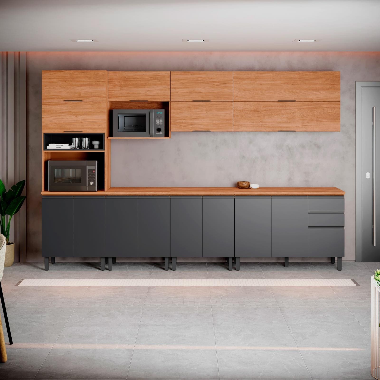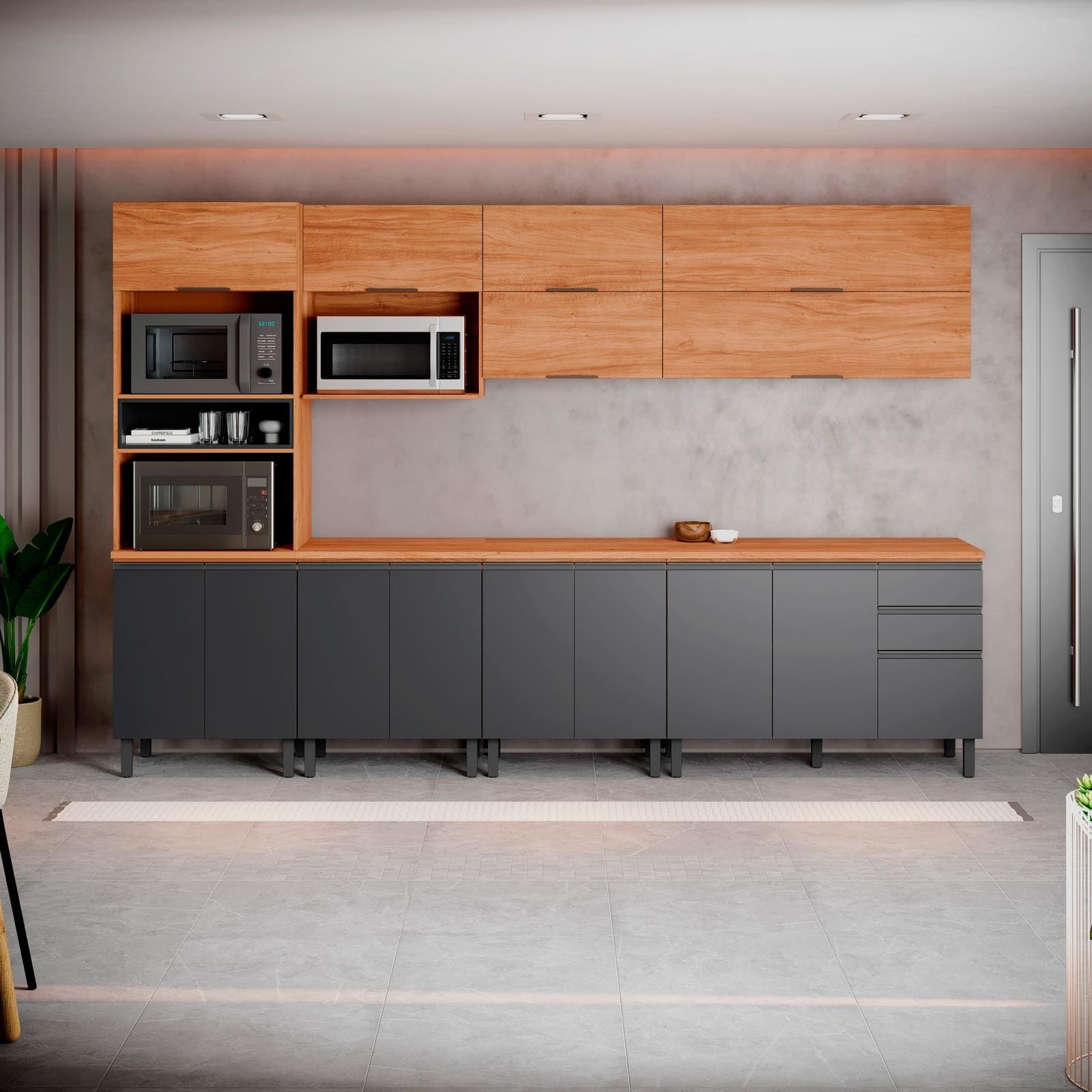 Cozinha Completa Itatiaia Ideale 7 Peças Paneleiro Balcões Nicho Micro-ondas Cinamomo Grafite