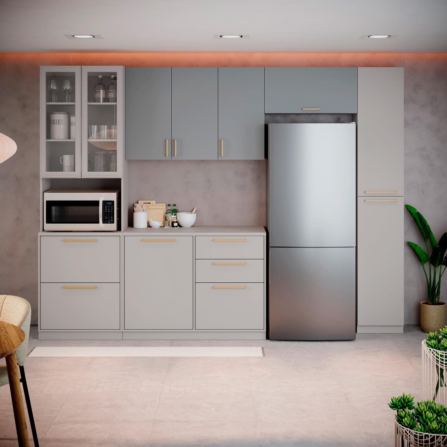 Cozinha Completa Itatiaia Essence 5 Peças MDF 25mm Puxadores Alumínio Fendi Gris