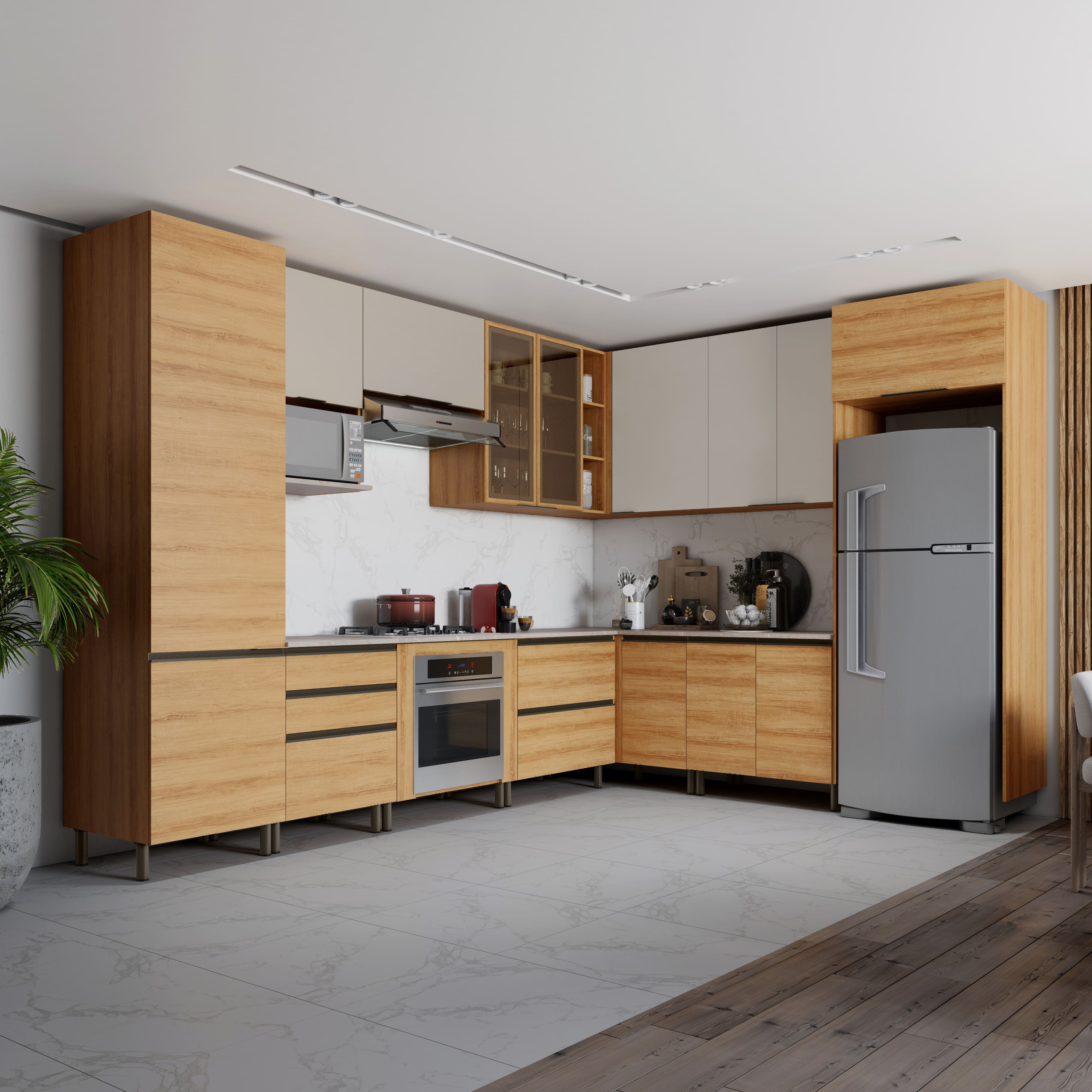 Cozinha Bartira Cristal com 13 Portas, 5 Gavetas, 13 Prateleiras e Nicho para Forno e Micro-ondas - 762,8cm de Largura