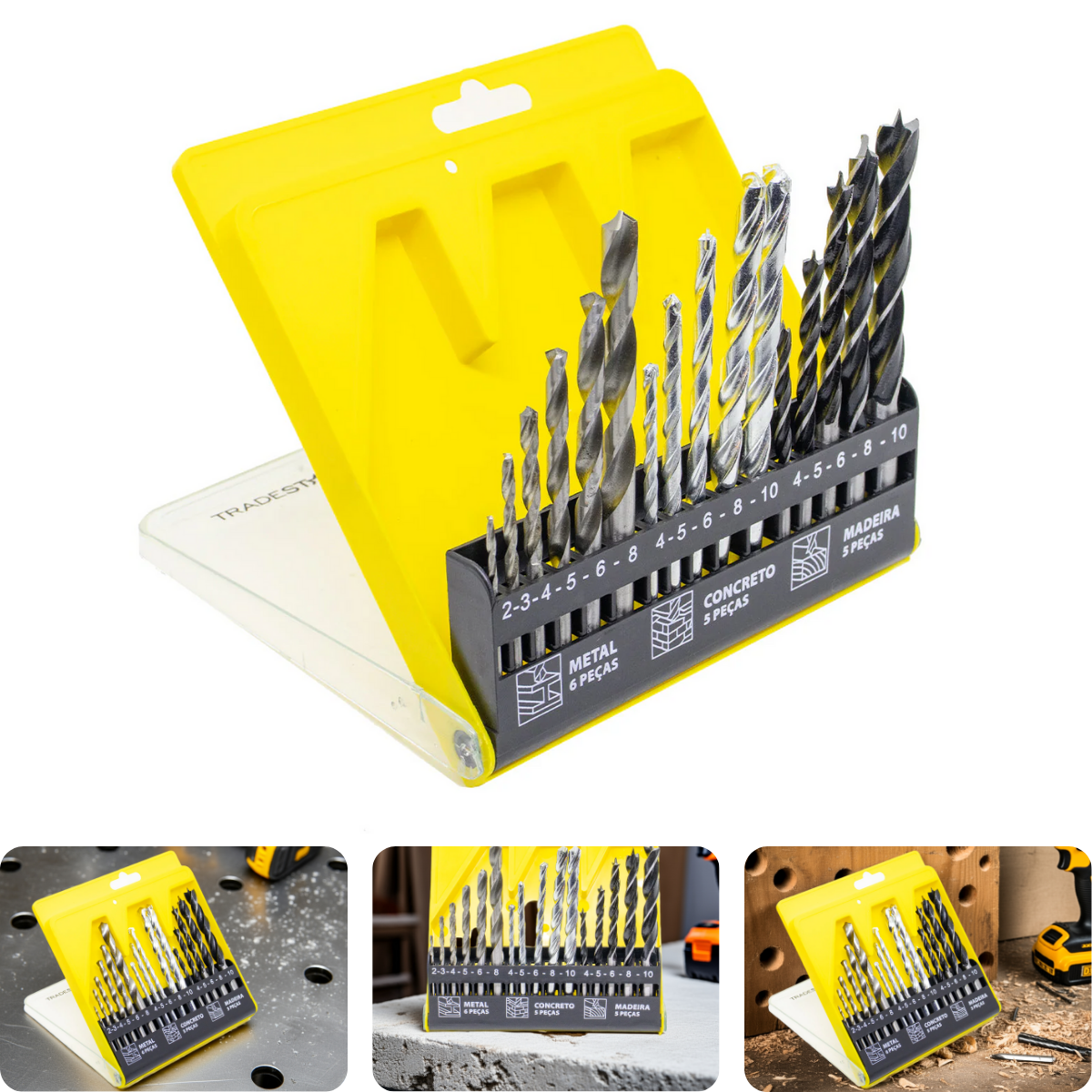 Jogo Brocas Concreto Madeira Metal 16 Peças Tradestar