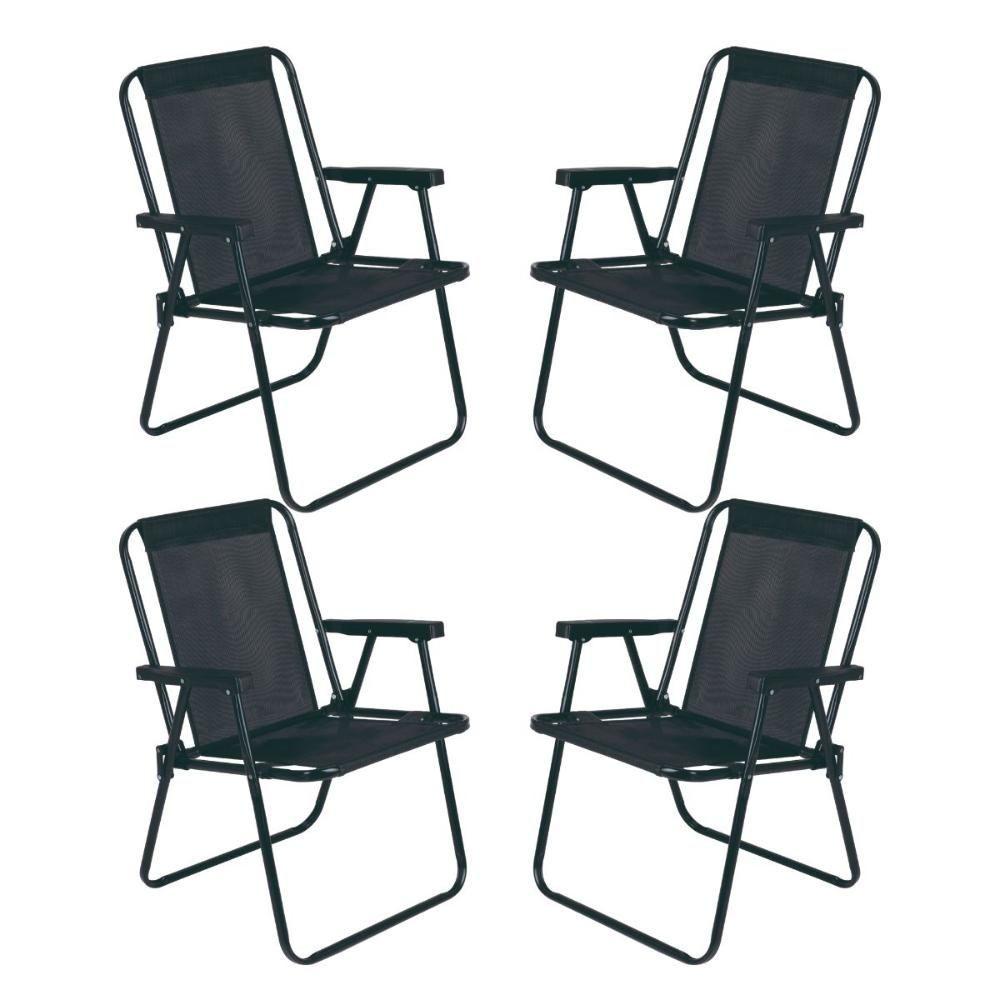 Jogo 4 Cadeira Alta Preta Mor Dobrável Reforçada Até 110kg Praia Varanda Camping Jardim