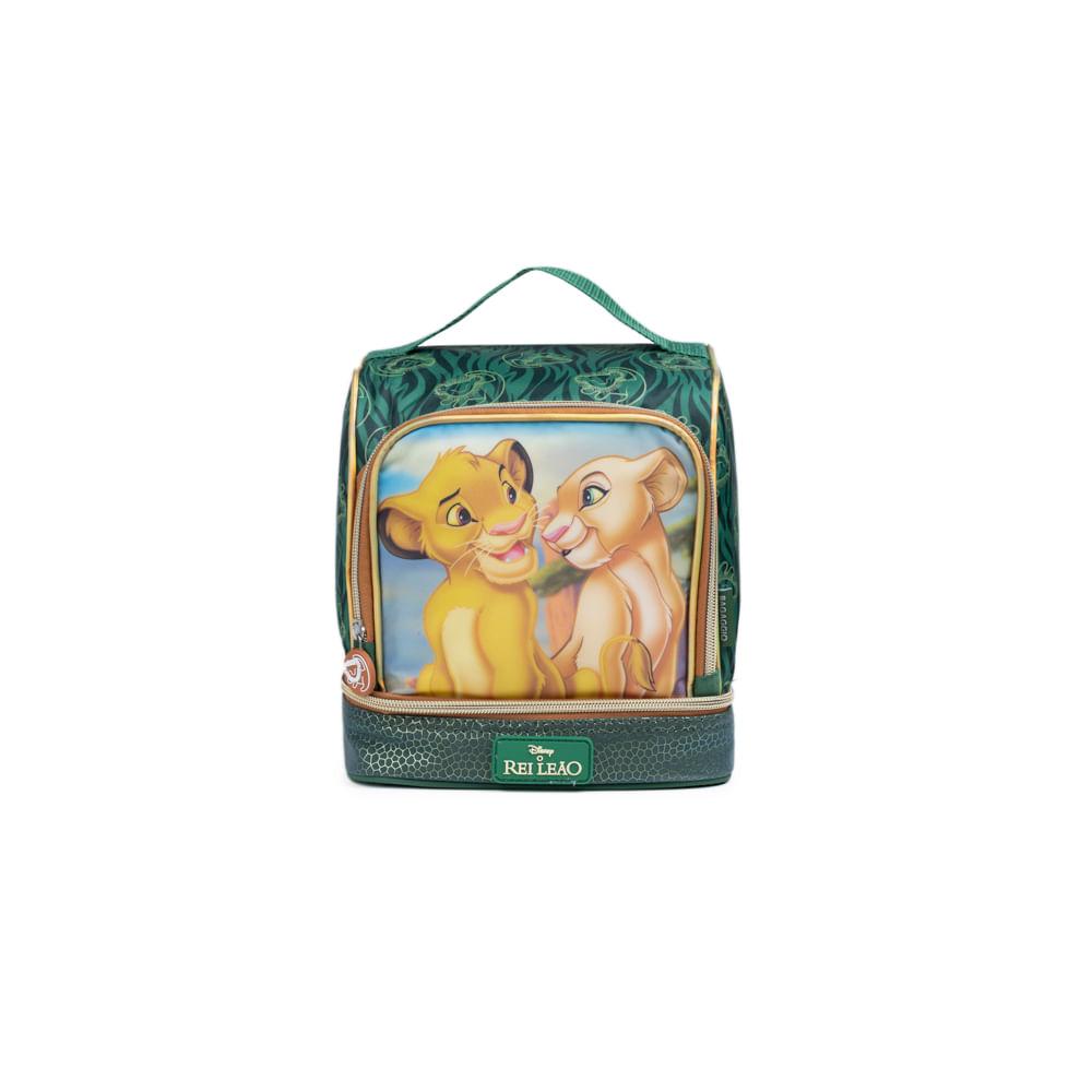 Lancheira Térmica Infantil Masculina Rei Leão Simba e Nala Verde Escuro