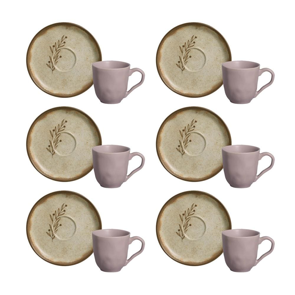 Conjunto de Xícaras para Café Porto Brasil Stone Nativa com Pires 120 ml - 6 peças