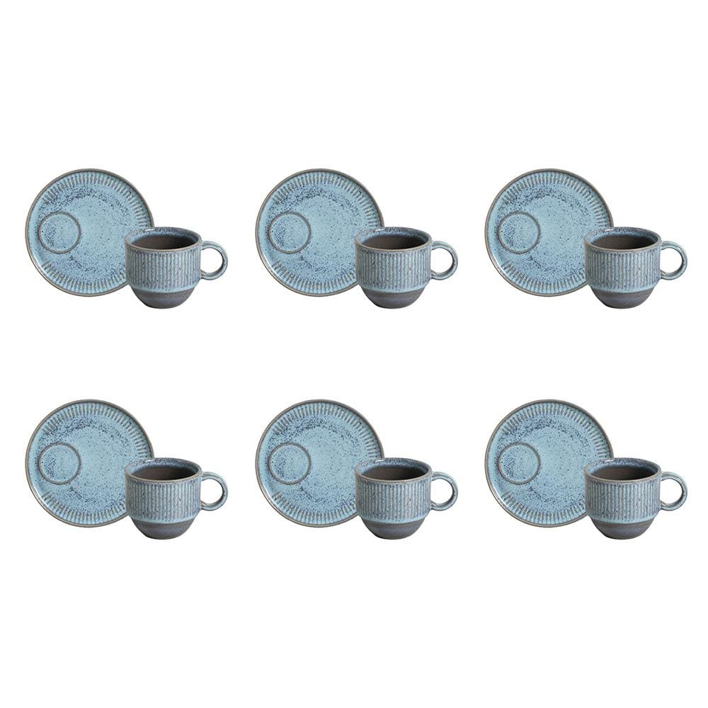 Conjunto de Xícaras e Pires para Chá Porto Brasil Linhas Breeze 230ml - 6 Peças