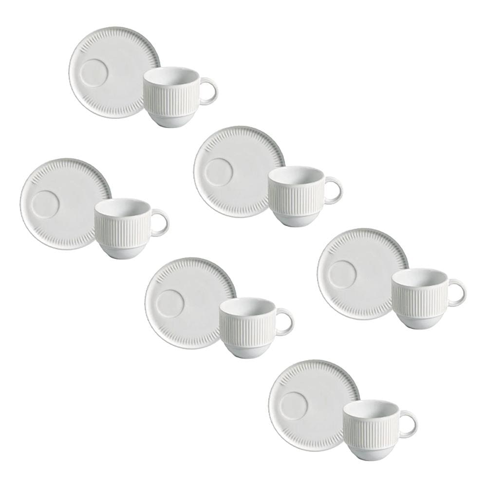 Conjunto de Xícaras de Chá com Pires Porto Brasil Linhas New White 230ml - 6 Peças