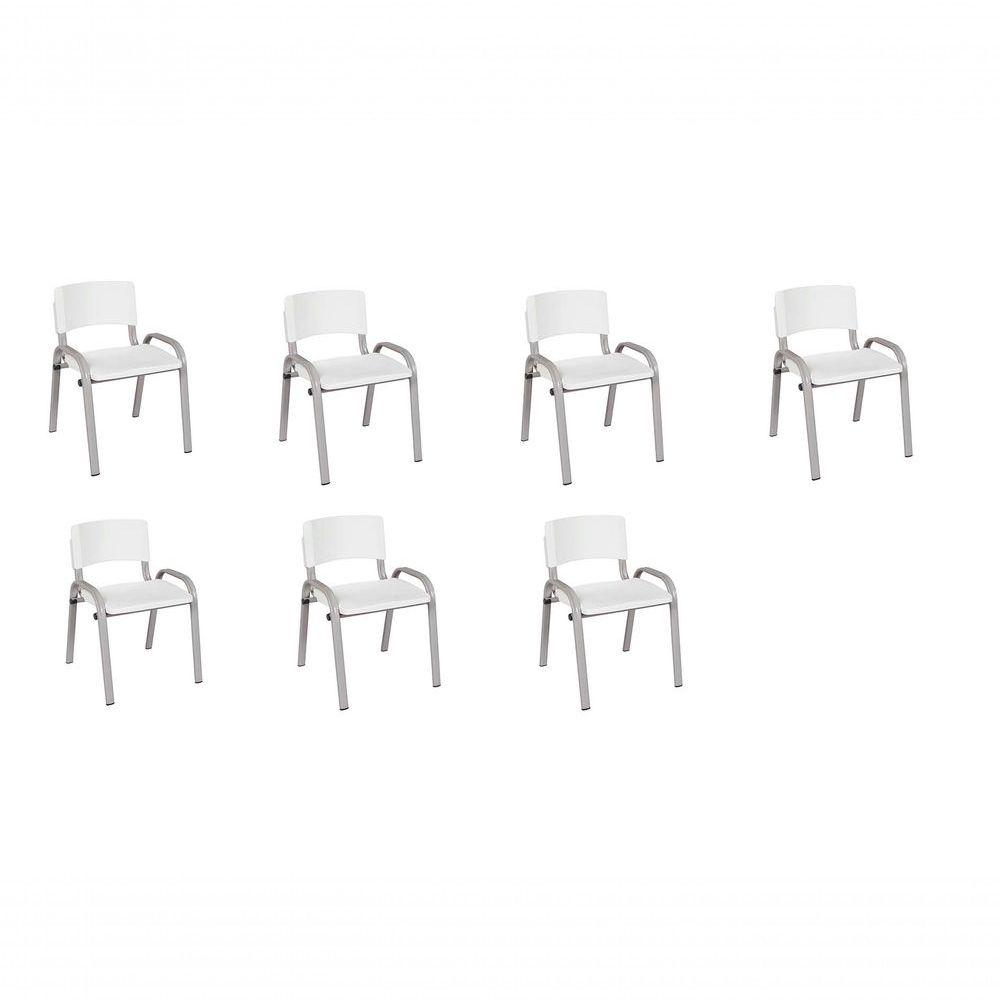 Kit 7 Cadeiras Infantil Iso, Escola, Base Cinza- Branco