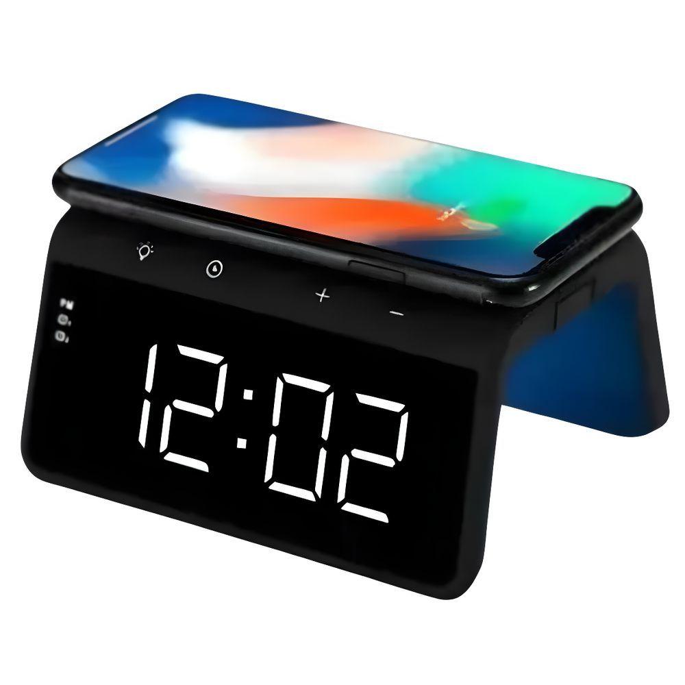 Carregador Indução + Relógio Despertador (preto)