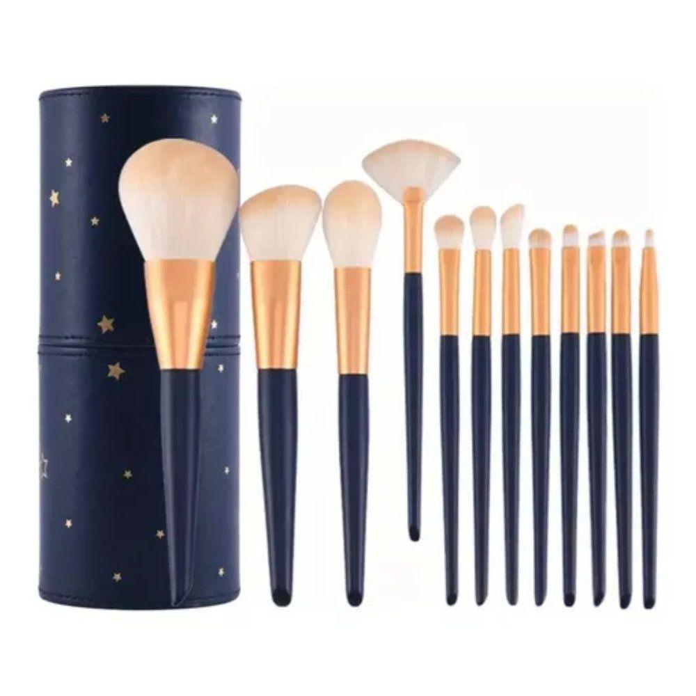Kit 12 Pincéis De Maquiagem Profissional + Estojo - Platina