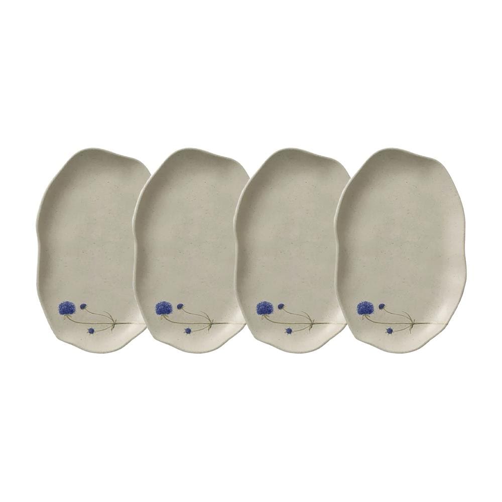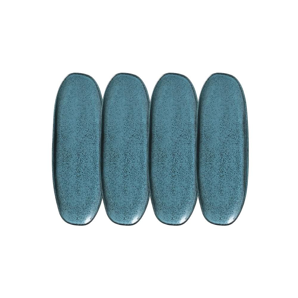 Conjunto de Travessas Oval Rasa Grande Porto Brasil Orgânico Oceano 36x13cm - 4 Peças