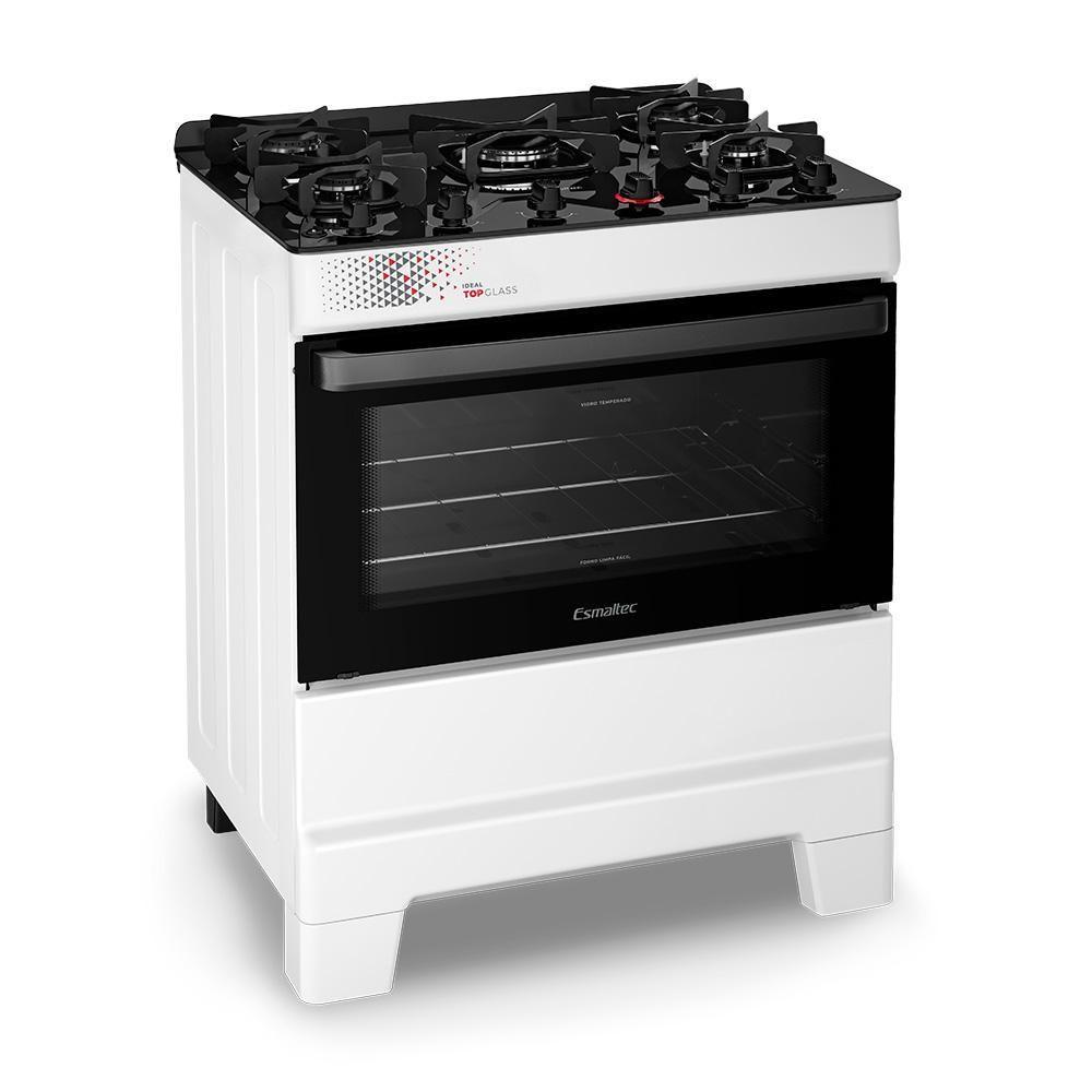 Fogão A Gás Mesa De Vidro Forno 84L Esmaltec Ideal Top Glass Branco 5 Bocas Bivolt
