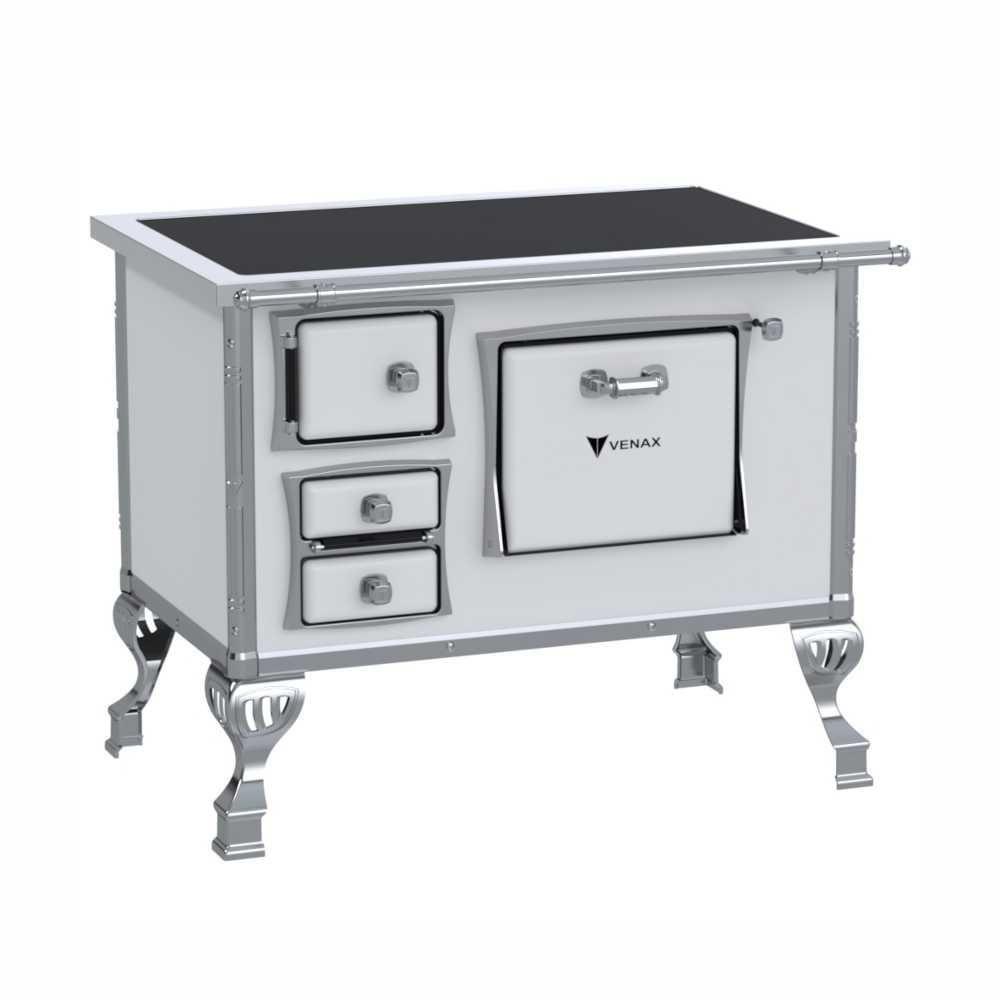 Fogão A Lenha N° 02 Venax Premium Gii Branco Chapa Vitrocerâmica Saída Direita Sem Tampa