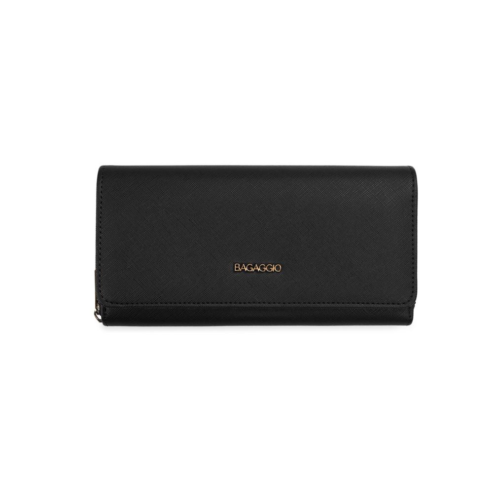 Carteira de Couro Feminina com Zíper Pequena Zig Zag Preta