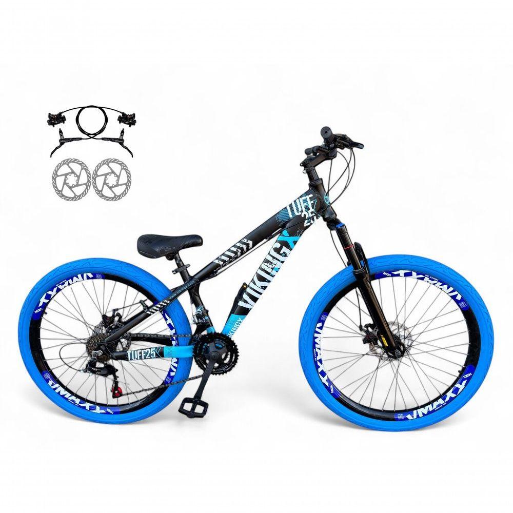 Bicicleta Aro 26 Vikingx Tuff Freio Hidráulico 21v Freeride Rodas Vmaxx Suspensão Pneu Flame Azul-preto X25