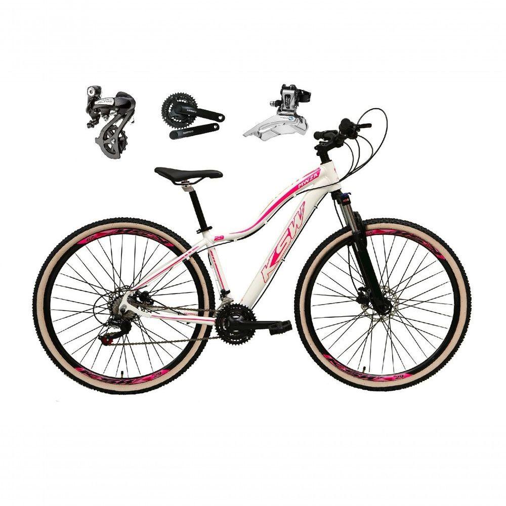 Bicicleta Aro 29 Ksw Mwza Feminina Shimano Altus 24v Freio A Disco Hidráulico Garfo Com Trava branco-rosa Tam: 15