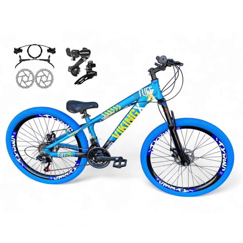 Bicicleta Aro 26 Vikingx Tuff Câmbios Shimano Freio Hidráulico 21v Freeride Aro Vmaxx Flame Azul-preto X25