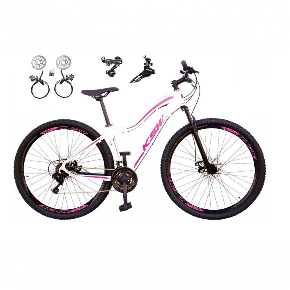 Bicicleta Aro 29 Ksw Mwza Feminina Câmbios Shimano 21v Freio Hidráulico Garfo Suspensão branco-rosa Tam: 17