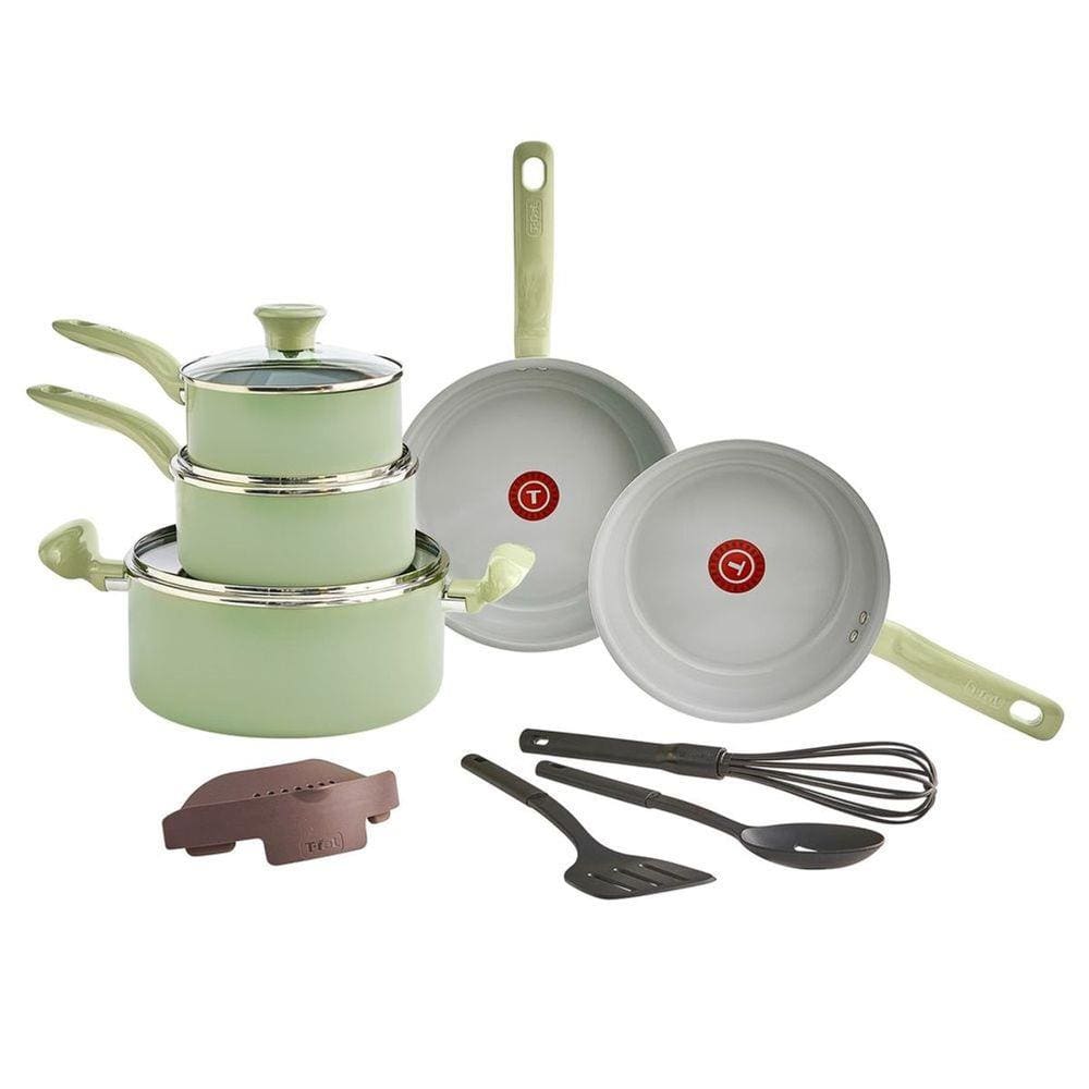 Jogo de Panelas Tefal Recycled Ceramic 9 Peças Revestimento Cerâmico Antiaderente Verde