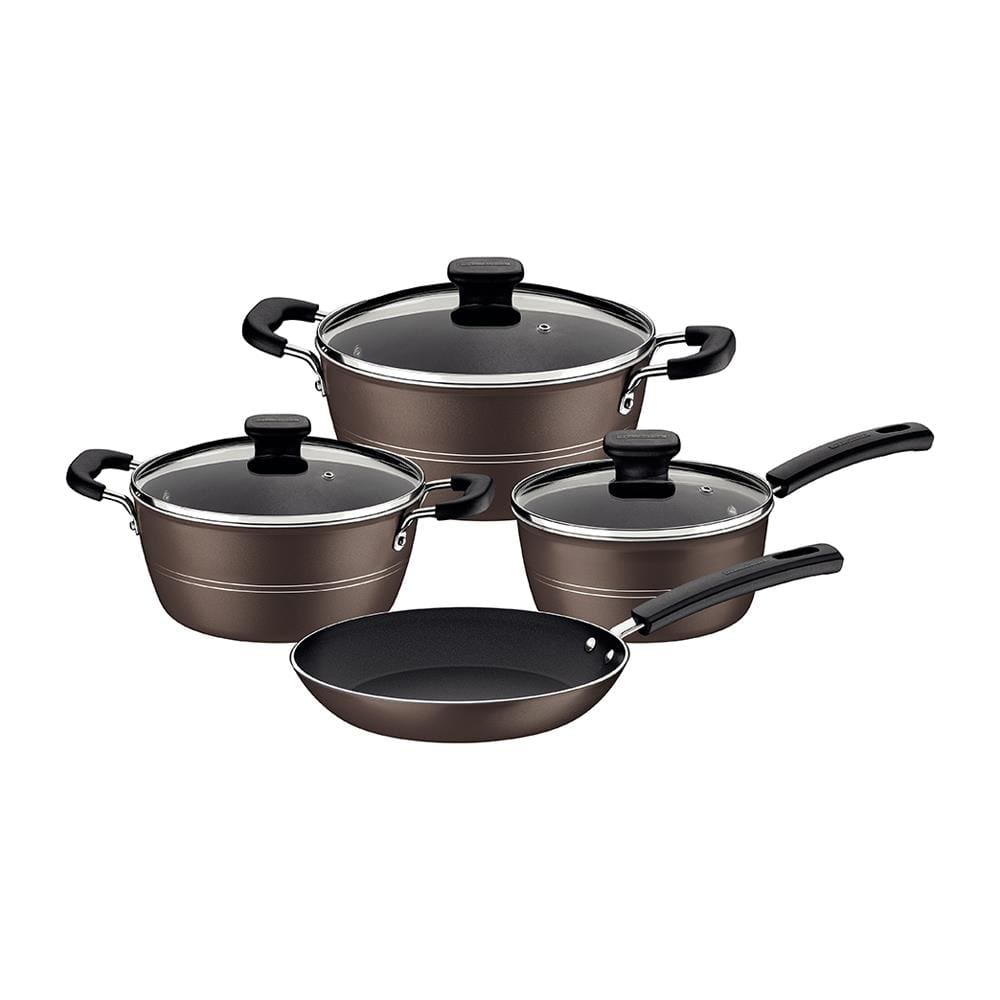 Jogo de Panelas Tramontina Sicília em Alumínio com Revestimento Interno e Externo Antiaderente Starflon Excellent Avelã – 4 Peças