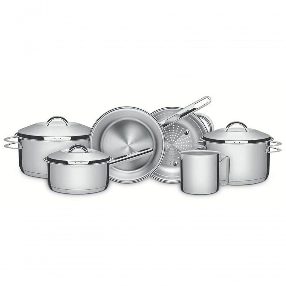 Jogo De Panelas Tramontina Solar Com Fervedor Em Inox 6 Peças