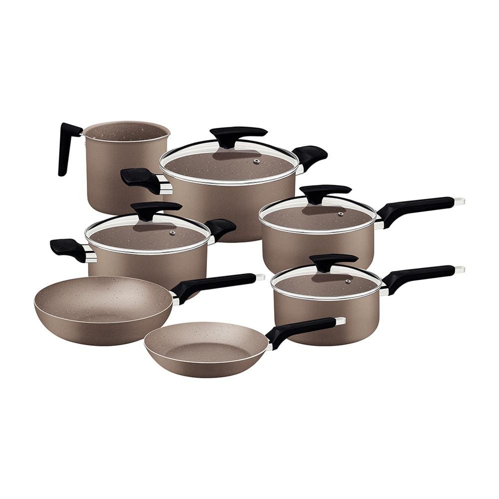 Conjunto de Panelas 7 Peças Tramontina Milazzo em alumínio com revestimento em antiaderente Starflon Max - Amêndoa