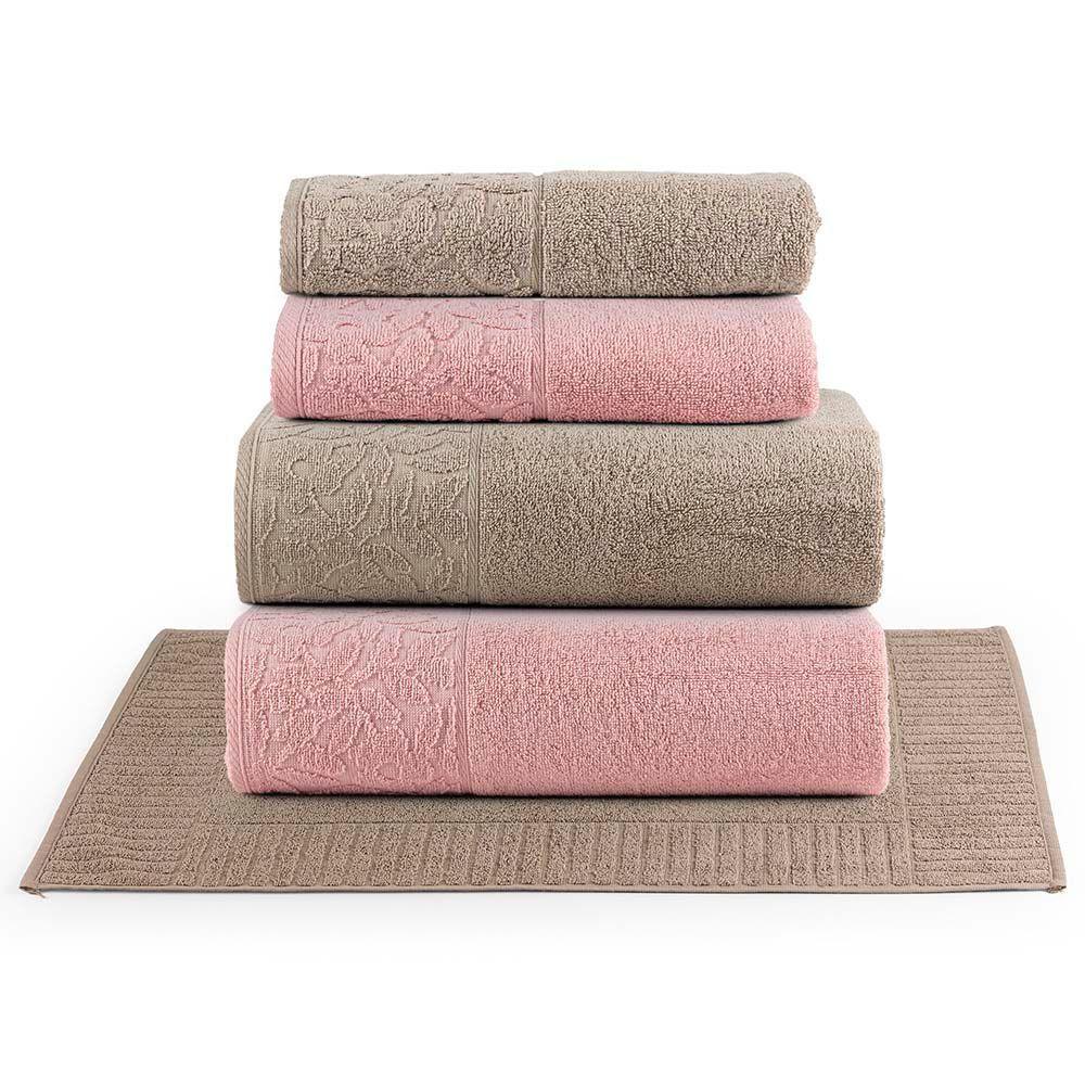 Jogo De Toalhas 8 Pe?a Cole??o Montreal 100% Algod?o Marrom+rosa