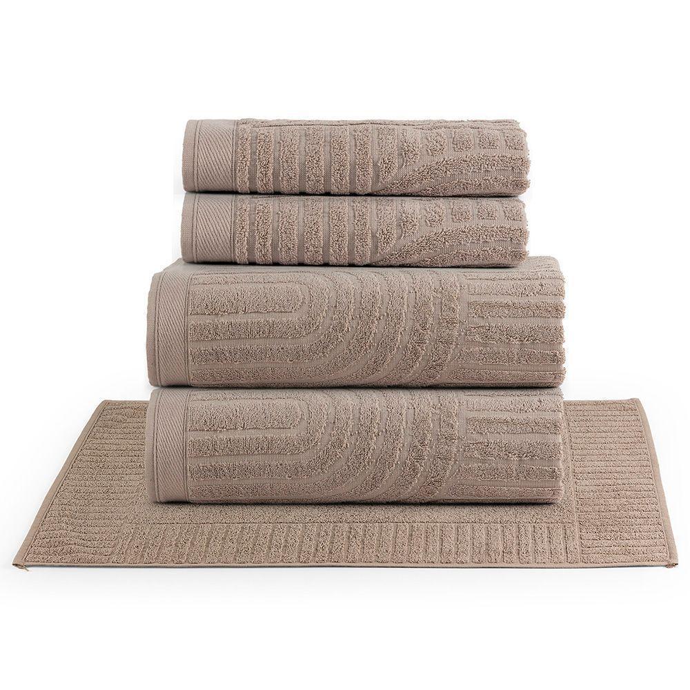 Jogo De Banho Dunna Fio Penteado Relevo Dunas 05 Peças 100% Algodão - Amêndoa