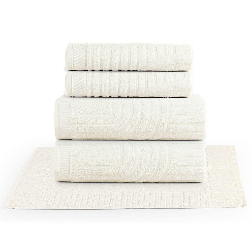Jogo De Banho Dunna Fio Penteado Relevo Dunas 05 Peças 100% Algodão - Off White