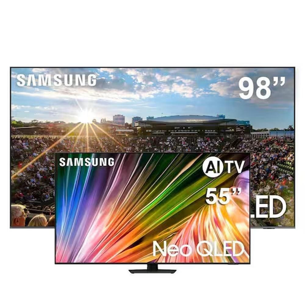 Smart TV QLED 98" 4K Samsung 98Q80C com Processador com IA + Smart TV 55" 4K Samsung Neo QLED 55QN85D com Processador NQ4 AI Gen2 e AI Energy Mode