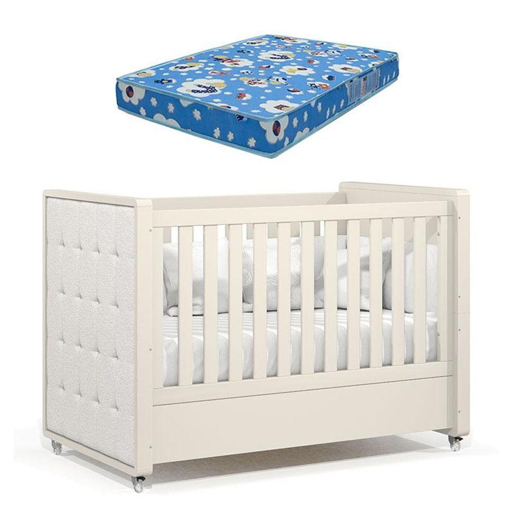 Berço Americano Tutto New Off White Com Capitonê New Boucle E Colchão Gazin - Matic