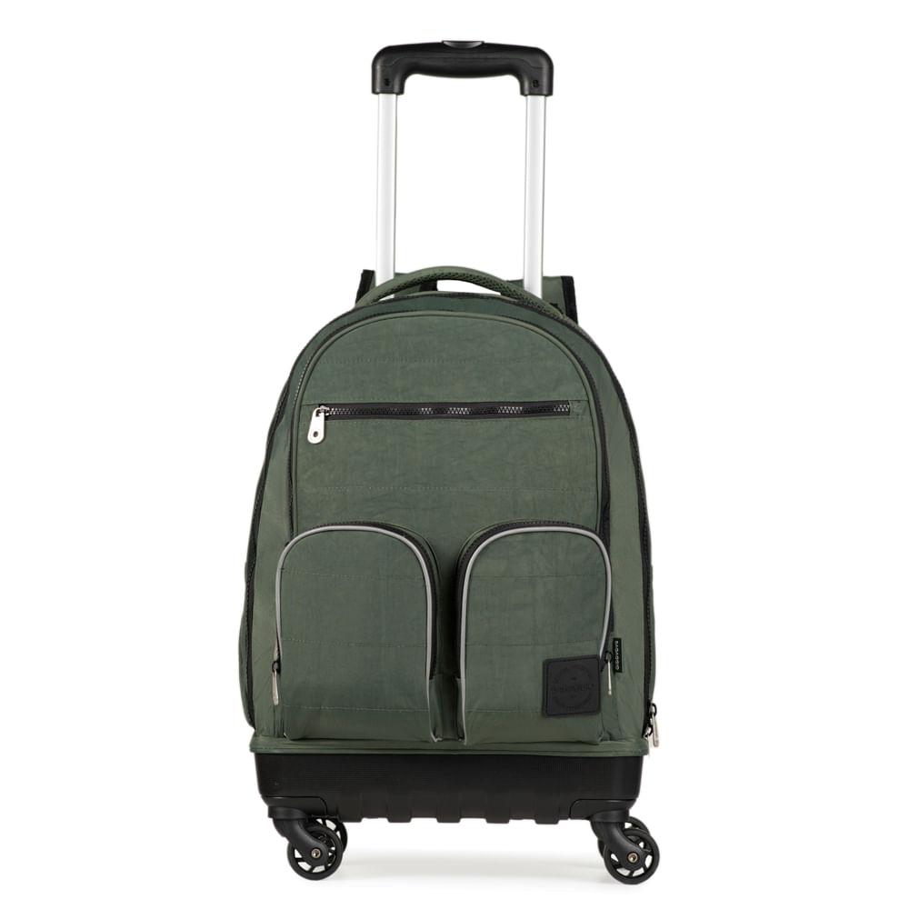 Mochila de Rodinha Juvenil Masculina Color Block 4 Rodas Verde Escuro